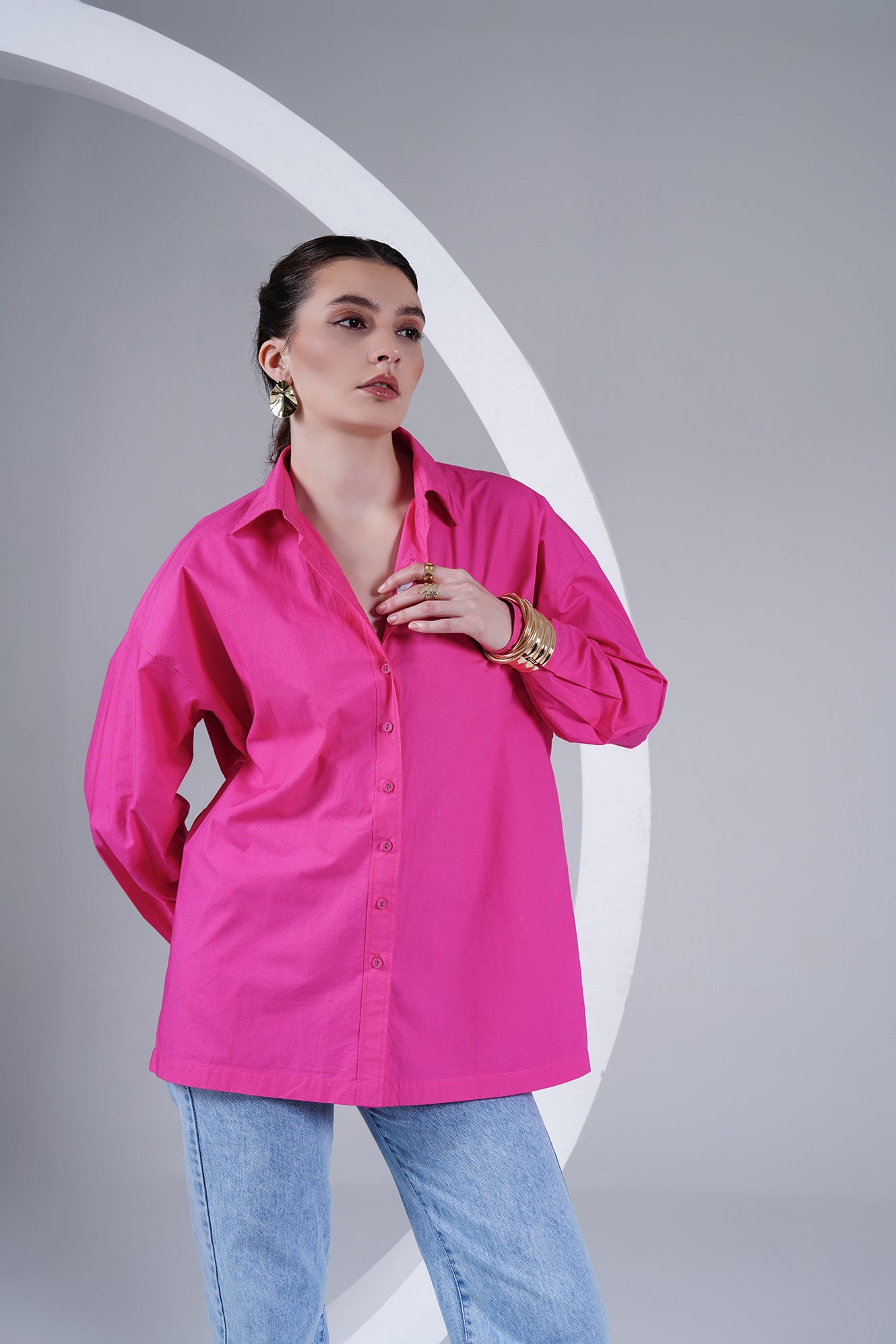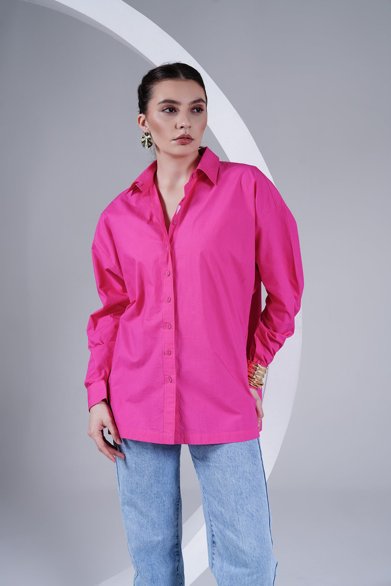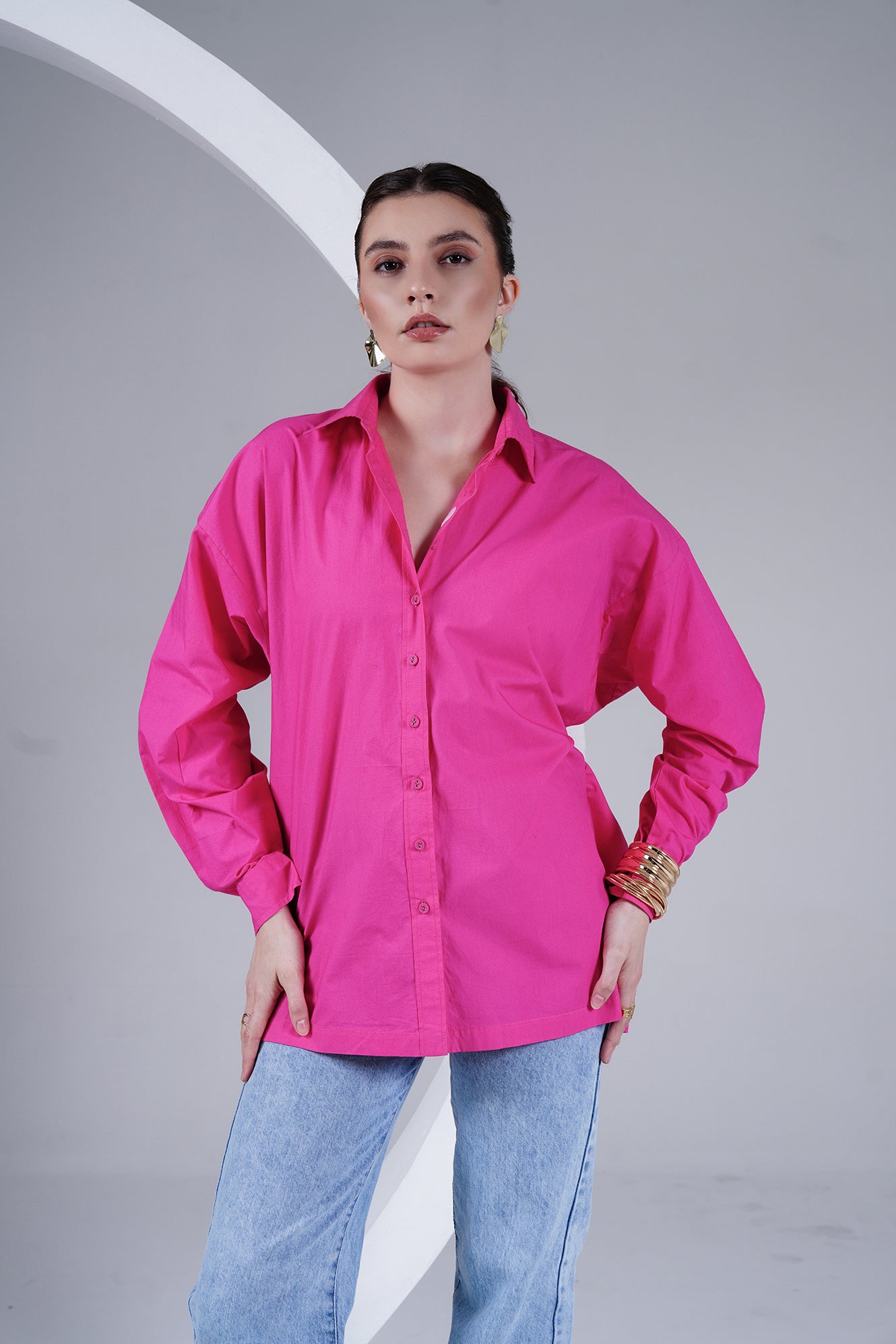 Hot Pink Oversized Poplin Shirt