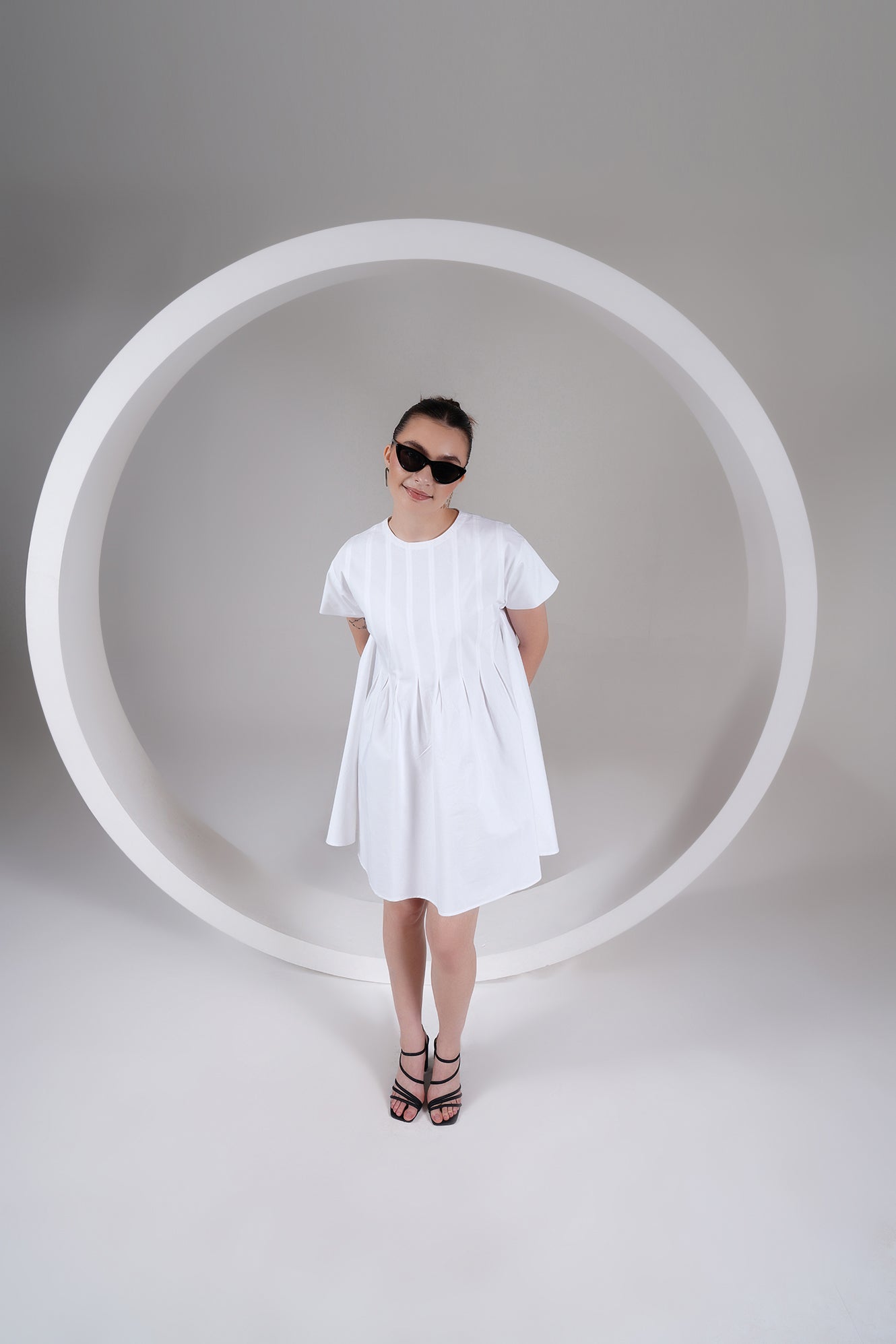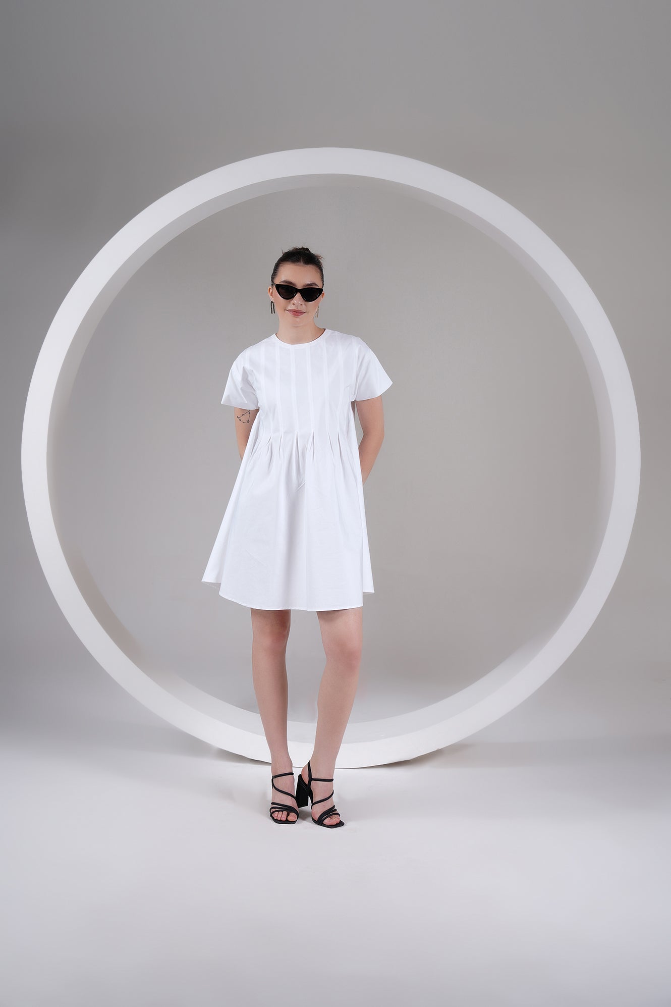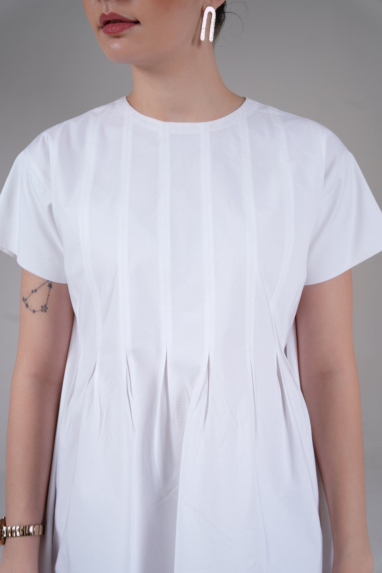 Step into timeless style with our Pleated Swing Mini Dress. This stunning white dress is designed for comfort and elegance, making it a perfect staple for your spring and summer wardrobe. The relaxed, A-line silhouette offers a flattering fit for all body types, while the thoughtful pleated detailing adds a touch of sophisticated texture.