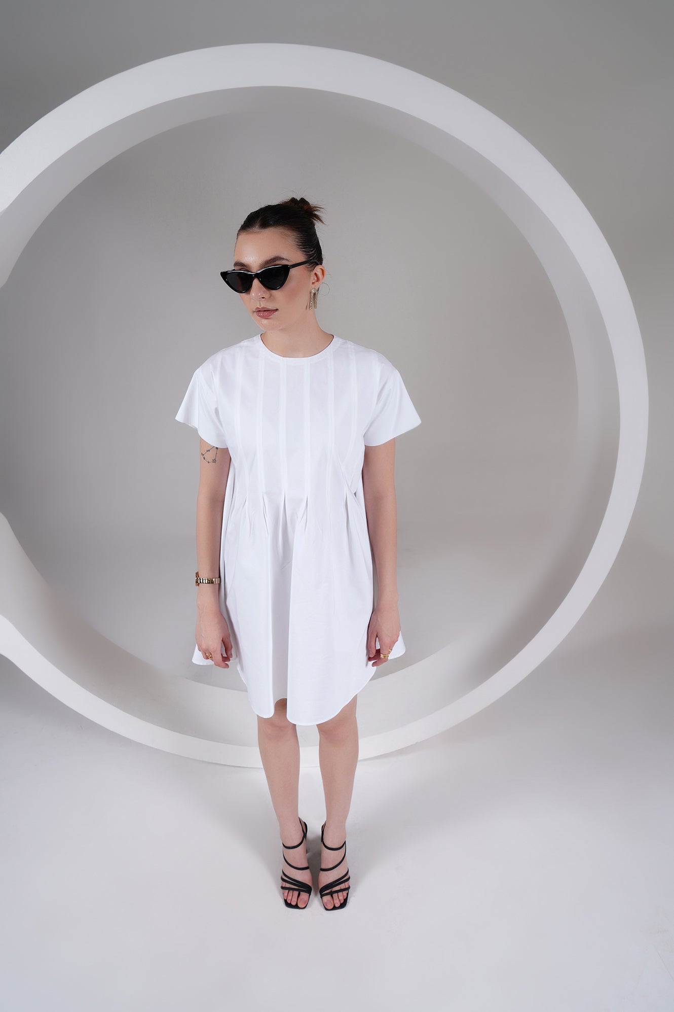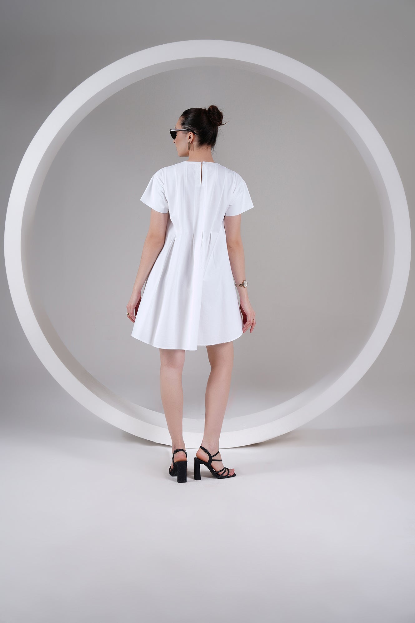 The Pleated Swing Cotton Mini Dress